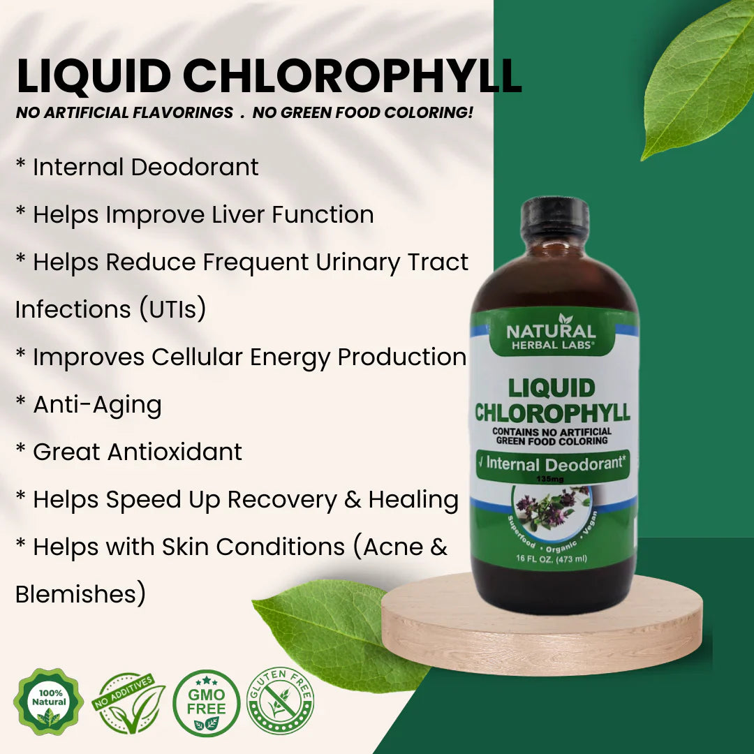 Science has proven that Chlorophyll has anti-microbial properties and helps strengthen the immune system, along with: